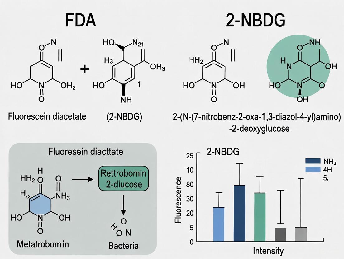 FDA and 2-NBDG are powerful yet distinct tools in the cell biologist's arsenal. Fluorescein Diacetate remains the probe of choice for direct, enzymatic-based viability assessment, particularly where membrane integrity and ubiquitous esterase activity are key indicators. In contrast, 2-NBDG offers a window into cellular metabolism through glucose uptake, making it invaluable for studies on cancer metabolism, rapid microbial viability, and other processes where metabolic activity is a primary readout. The decision between them must be guided by the biological question, with a clear understanding that they report on different, albeit sometimes correlated, aspects of cell physiology.